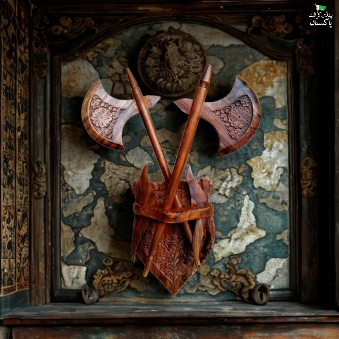 Handicraft Pakistan proudly presents the Antique Wooden AXE Wall Hanging Craft, a unique and artistic décor piece that brings charm to any room. This pair of wooden axes is beautifully crafted with intricate wood carving and polished to a smooth, fine finish, making it a timeless addition to your home or office.